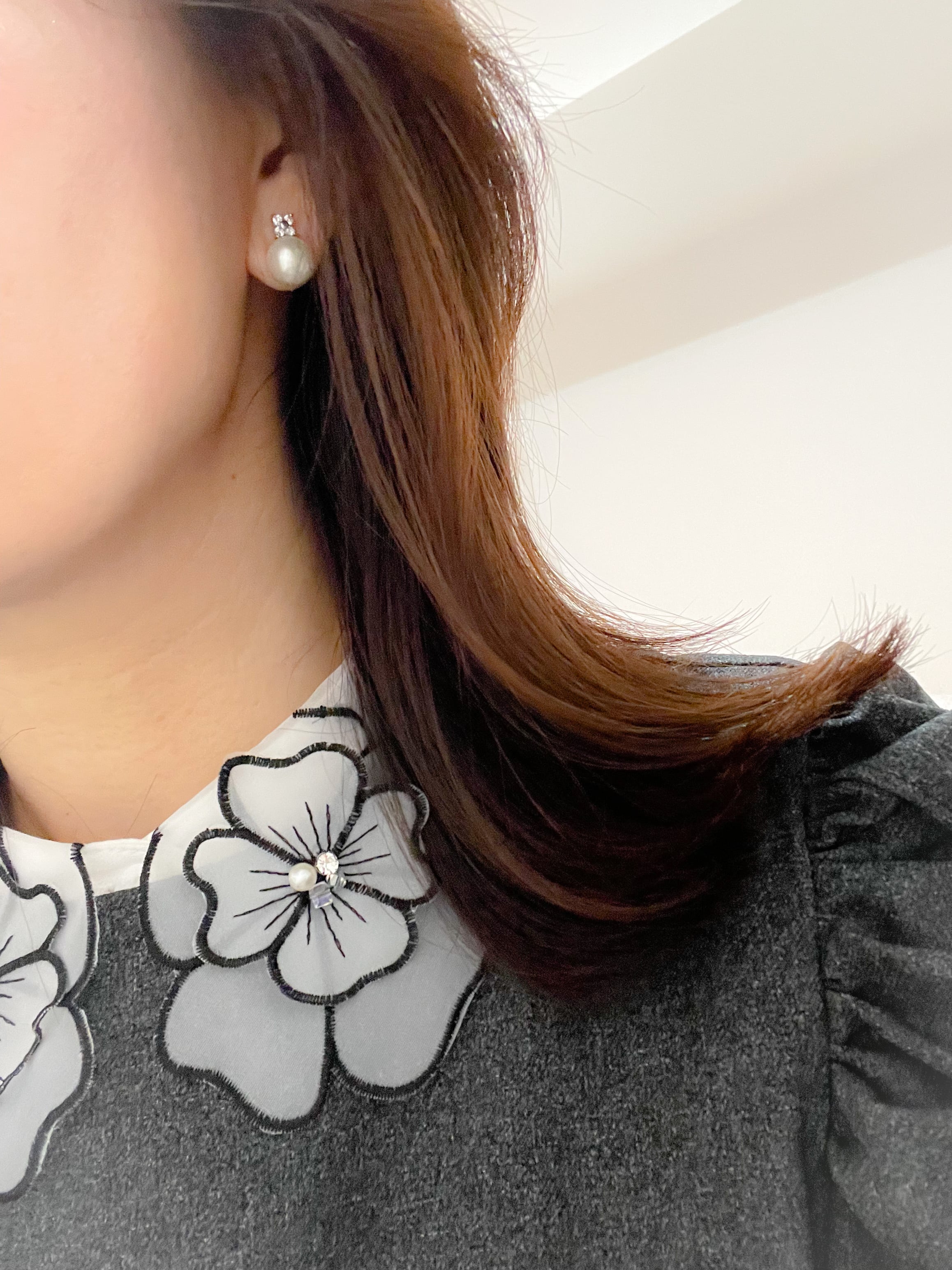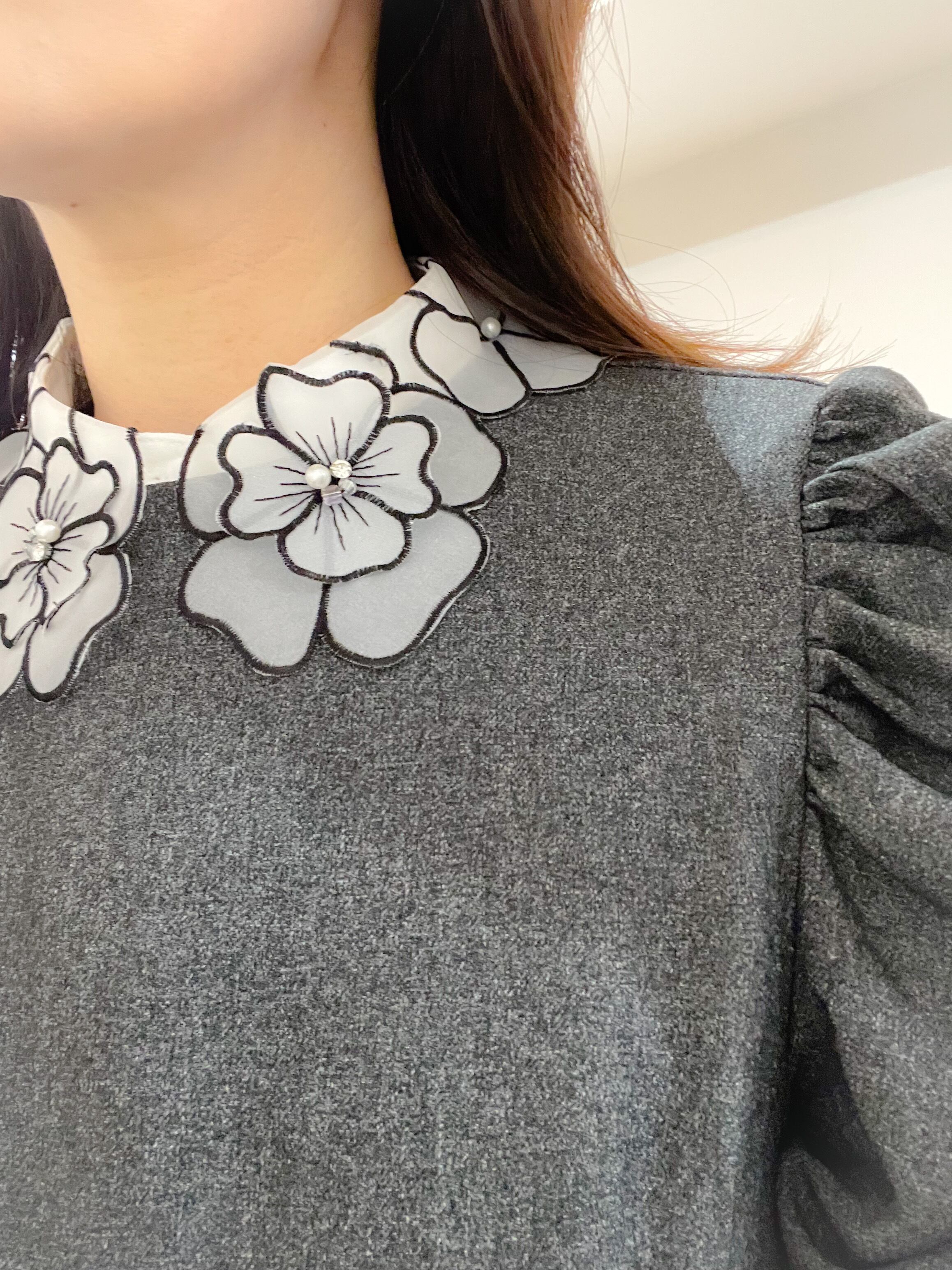 シックでありながらも華やかな印象のつけ襟です。