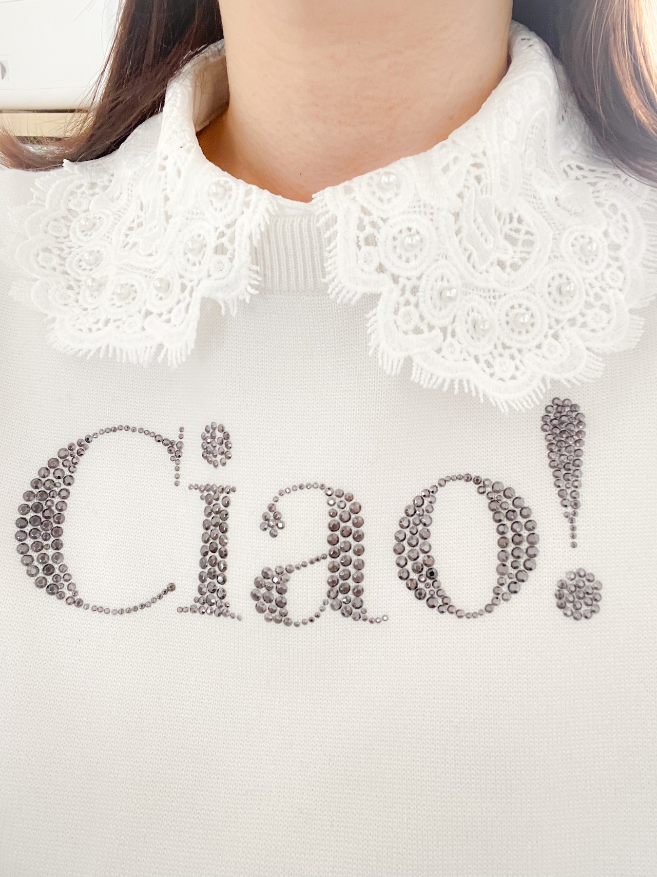 優雅な印象を与える大きめのレース襟。