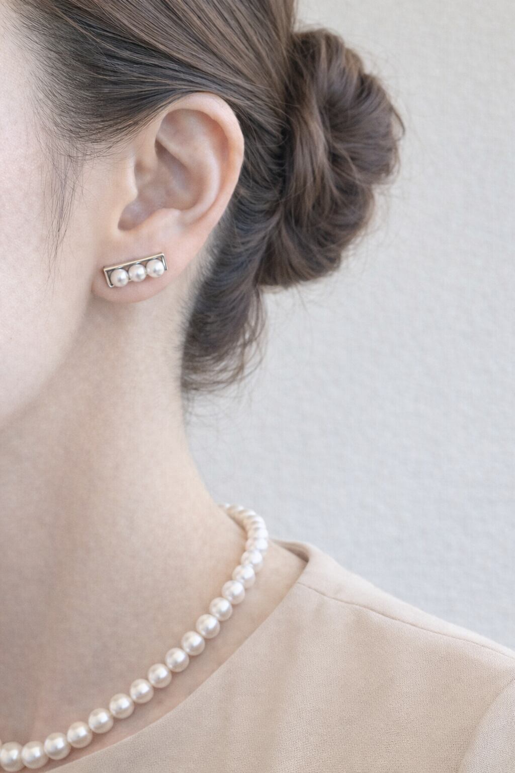 この3粒パールピアスを身に着けて、