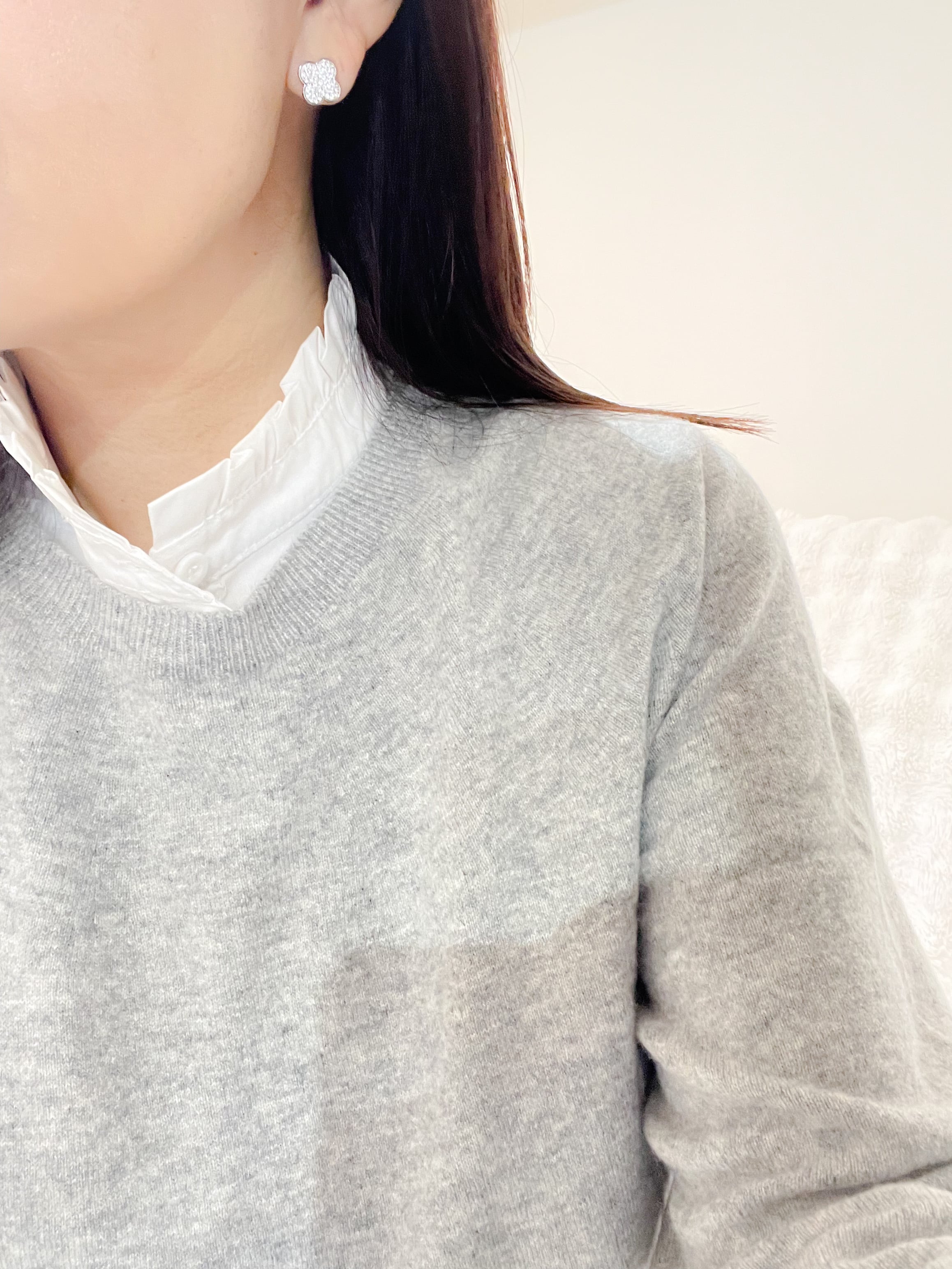 シンプルなニットに重ねるだけで