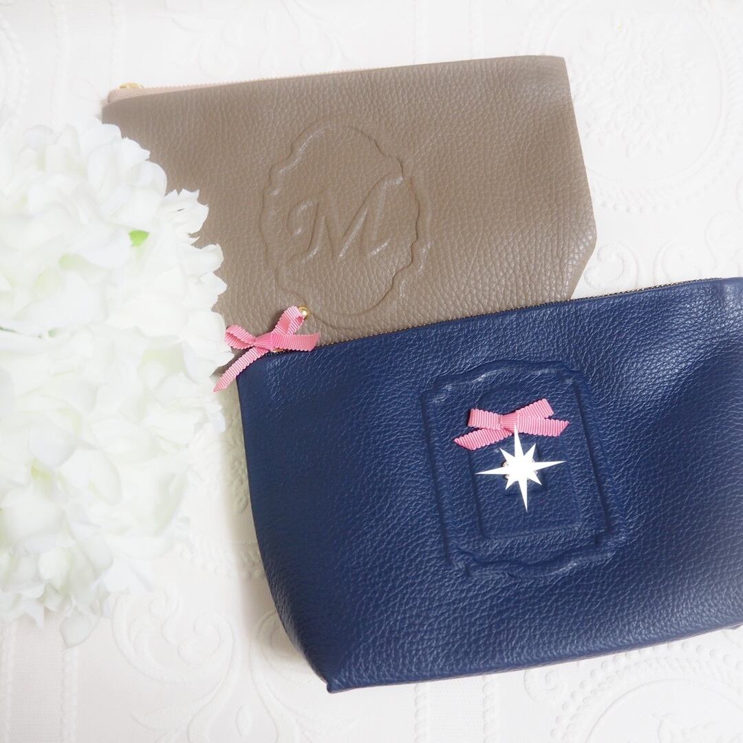 Atelier Stephanie & Beige Blueコラボのレザーエンボスポーチです。