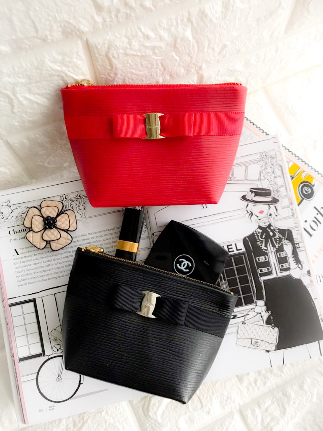 口紅や、ファンデーションなどちょっとした小物が入る大変便利なサイズです。