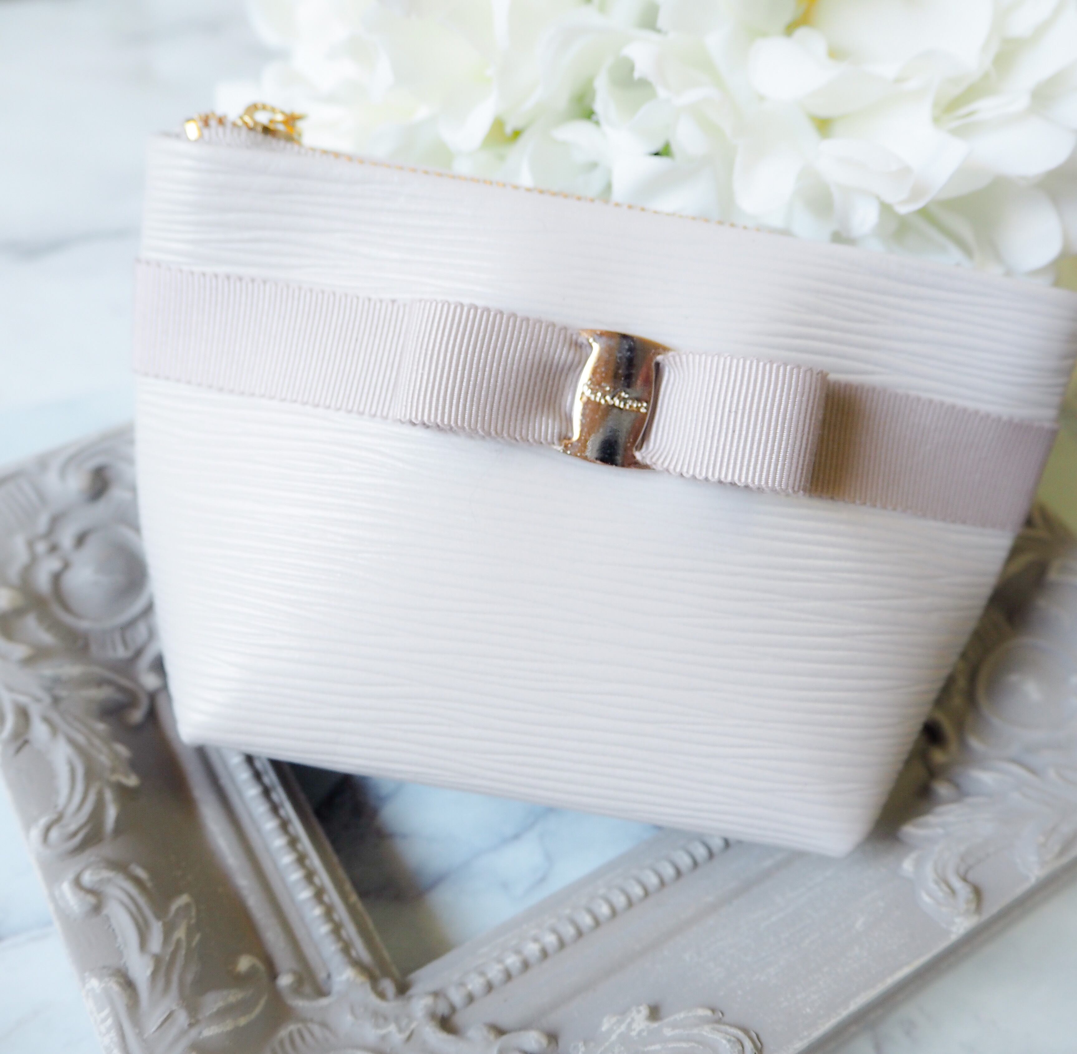 Atelier Stephanie & Beige BlueコラボのMARIEリボンミニポーチの完成品です。