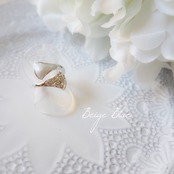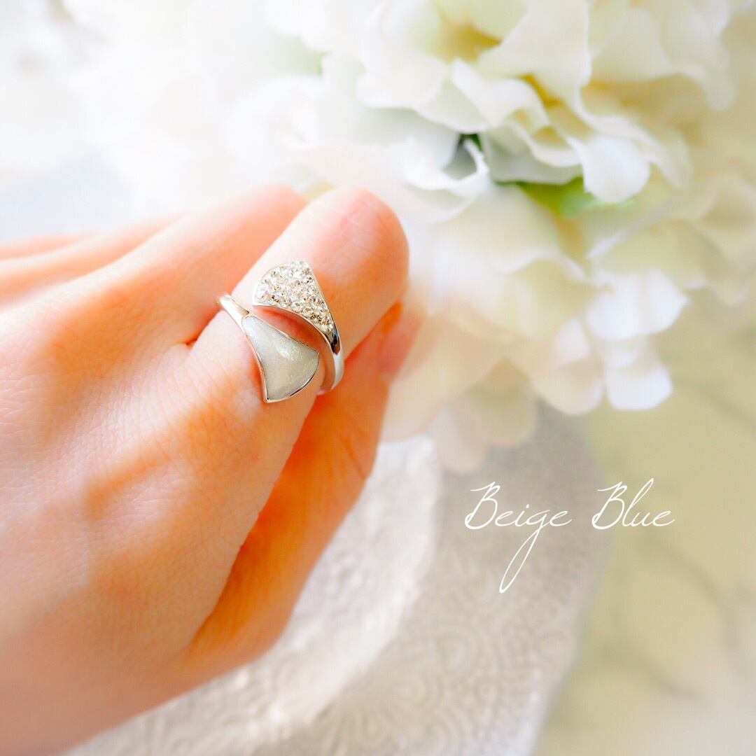 片側が白蝶貝風加工のしてあるイチョウ型リングです。